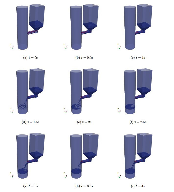 Boundary Conditions: The screw particles and regular granular particles are assigned distinct properties to simulate their respective dynamics accurately.